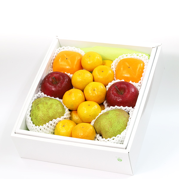 ※こちらは、柿・りんご・西洋梨が各2玉、みかんが15玉入った、(L)セットです。<(S)セットのご用意もございます。ご用途やご予算に合わせてお選びください。>