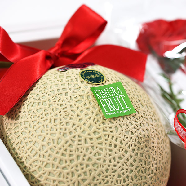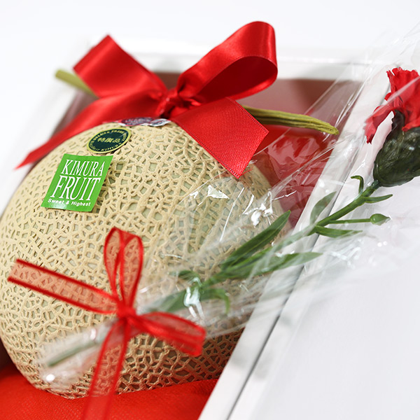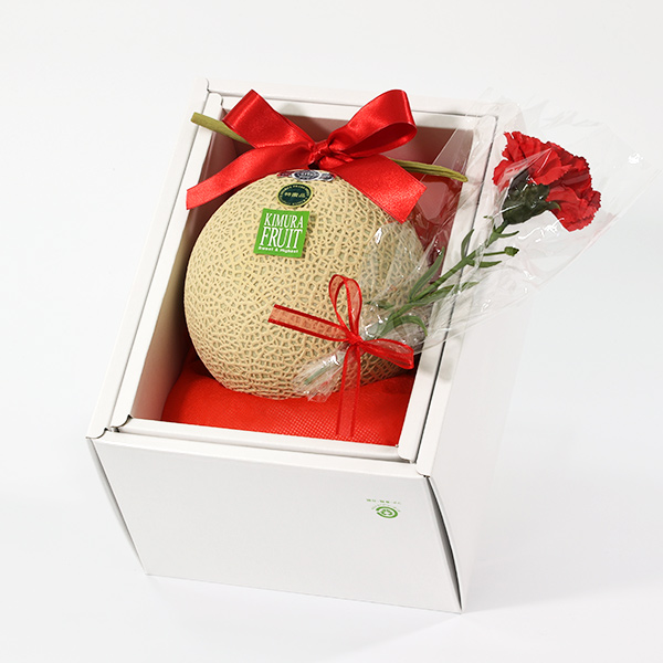 今年はメロンで。カーネーション(造花)を一緒にお届けします。