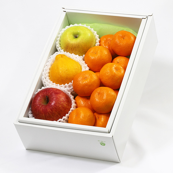 ※「みかん」・「王林」・「でこぽん」・「サンふじ」はそれぞれ単品の化粧箱入りギフトもご用意しております。お好みやご予算、ご用途に合わせてお選びください。